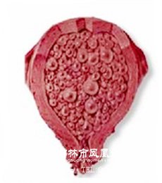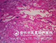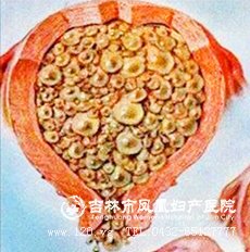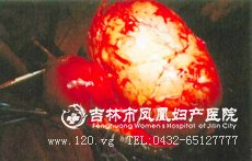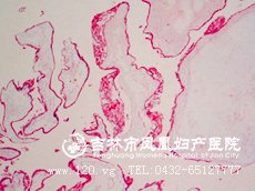 ②部分性葡萄胎:仅部分胎盘绒毛发生水泡状变性,宫腔内尚有存活或已死的胚胎。是有大绒毛和小绒毛组成,这些绒毛具有扇贝形(又称海岸形)的特点,伴有滋养细胞包涵体,部分可有轻度的滋养细胞增生。并且可有有胎儿或者胚胎的出现。