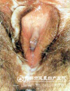 临床表现主要为病损区皮肤瘙痒,但程度较轻,甚至无瘙痒不适。病损常位于大阴唇、小阴唇、阴蒂包皮、阴唇后联合及肛周,多呈对称性。病损皮肤戮膜及肛周皮肤色紊减退、变白、变薄、变脆、干燥、易较裂、弹性减退或消失。阴蒂、大小阴唇干萎平坦,甚至黏连,阴道口挛缩狭窄。病理诊断为外阴硬化性苔藓。